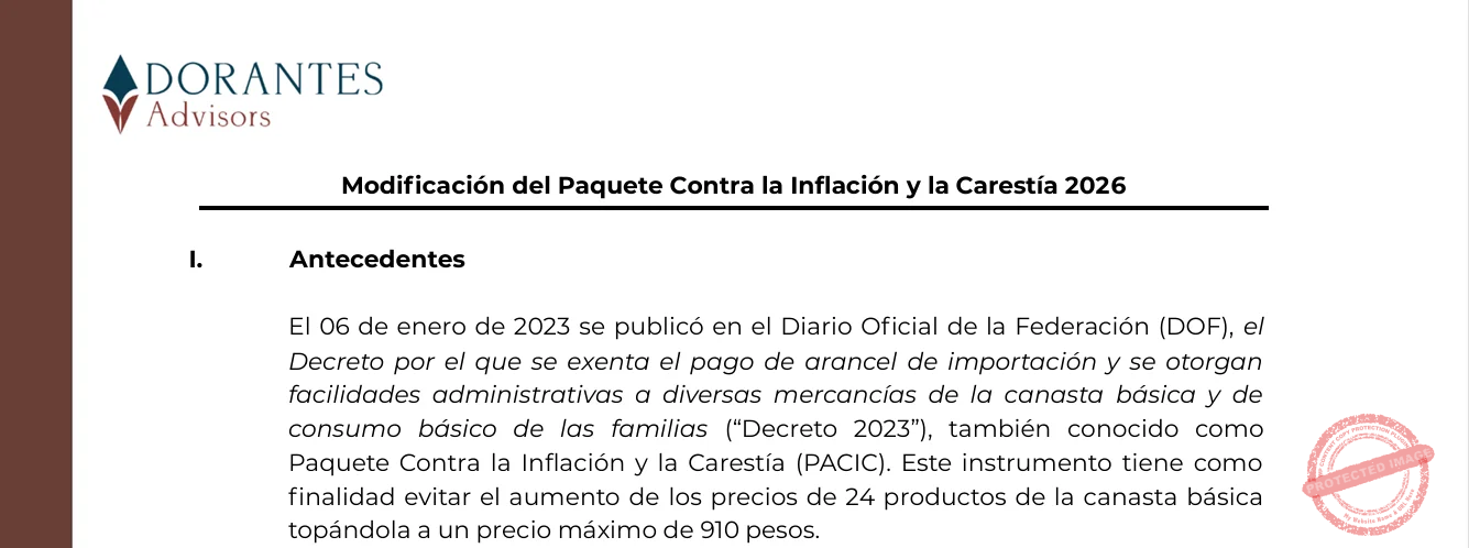 Modificación del Paquete Contra la Inflación y la Carestía 2026